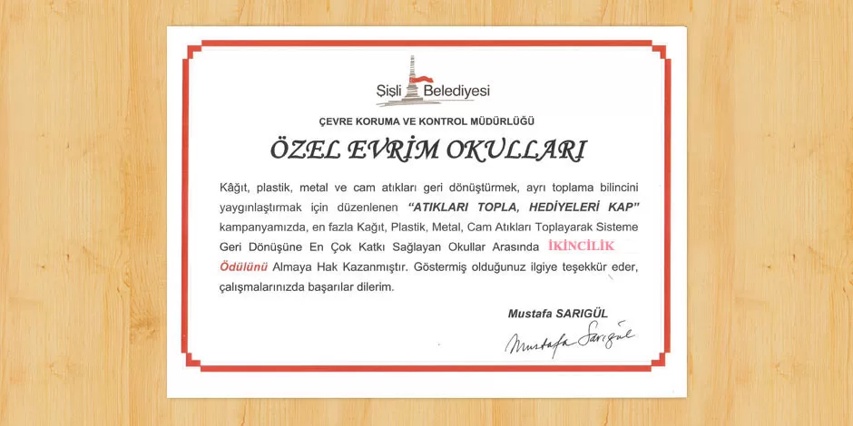 (Turkish) “Ağaçların Gizemli Dünyası” Proje Yarışmasından Birincilik Ödülü